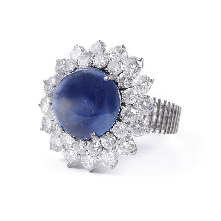 Sapphire and Diamond Flowerhead Ring